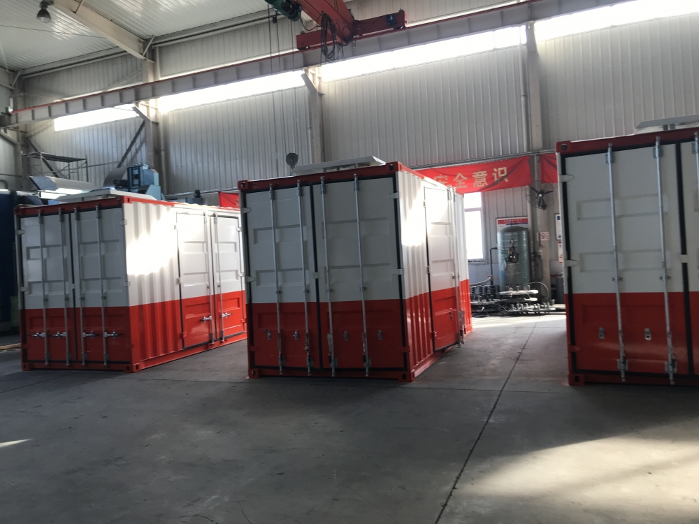 集裝箱內各部件布置合理,空壓機風冷氣體沿風道排出箱外、防爆風機強力通風,有效降低箱內溫度。內部設兩個